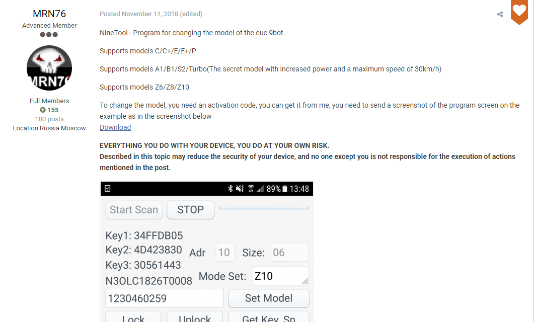 咦,居然还有这么清真的方式?虽然不算便宜,但是两百以内也完全可以接受,关键是,不用拆机,省了不少事儿,就顺着这条线继续往下查,找到了[这篇帖子:](https://forum.electricunicycle.org/topic/11976-ninetool-increase-max-speed-ninebot-and-change-model)