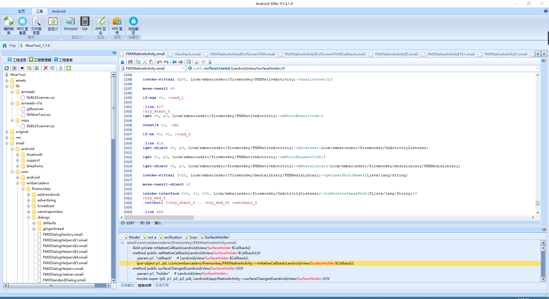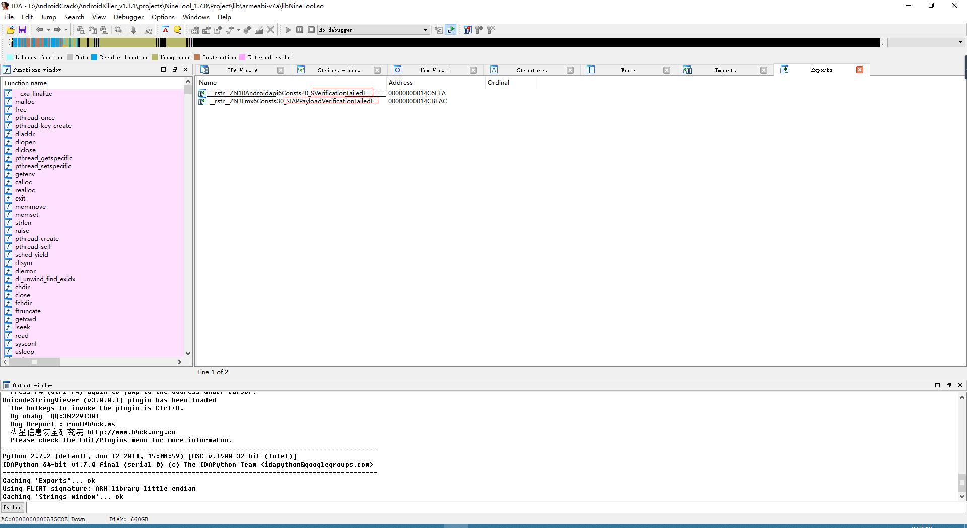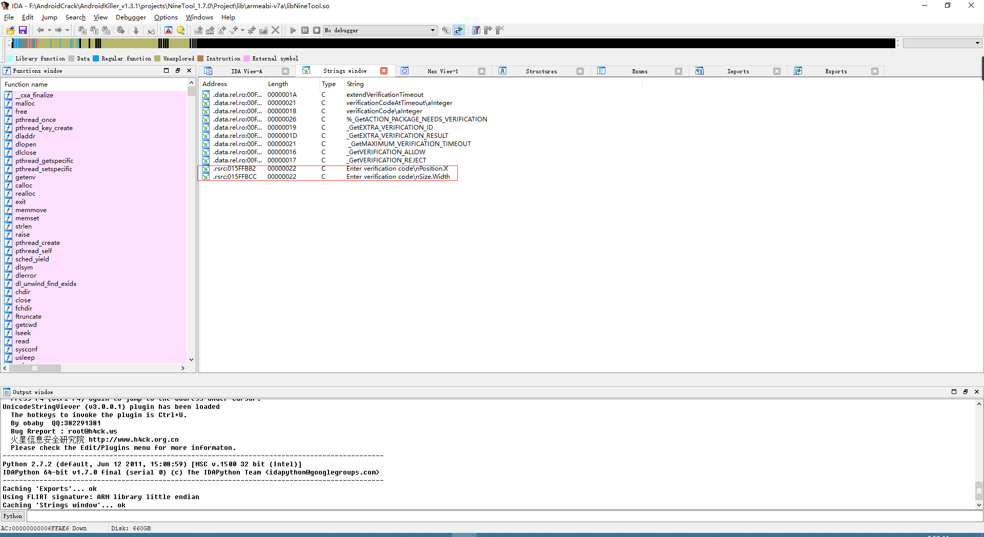 字符串窗口来看,控件逻辑果然是在 so 文件中,再看到处窗口: